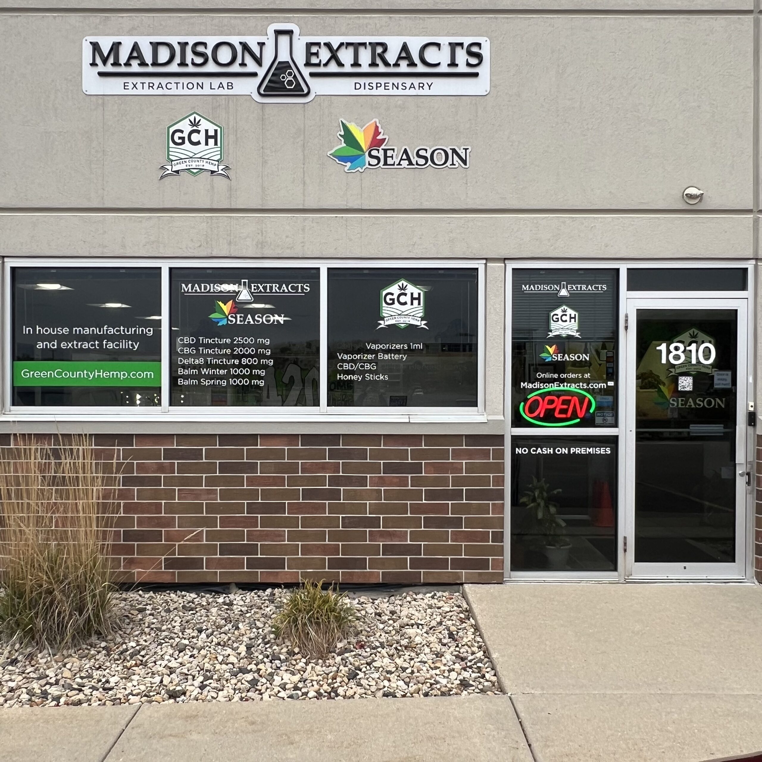 Madison Extracts was established in 2021. In the beginning of our journey we had a farm in the rolling hills of Green County, Wisconsin. While our focus was growing, we also we’re in the formulation stage to find the perfect formula to offer the perfect wellness tool to the community! One of our owners being the science guru put so much energy into finding our perfect formulations. All while ensuring the potency and purity remained top shelf. The products that we’ve created is separated by our two brands. Green County Hemp and Season. Green County Hemp is our brand for our recreational products. While Season consists of the products that are for a more medicinal approach. We officially opened our retail space in the front of our facility in September 2022 and have been open to the public since!